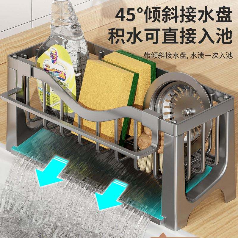 Dropshipping Shopify Sponge Holder for Kitchen Sink with Auto Draining Tray Sink Caddy with Dish Cloth Hanger for Kitchen
