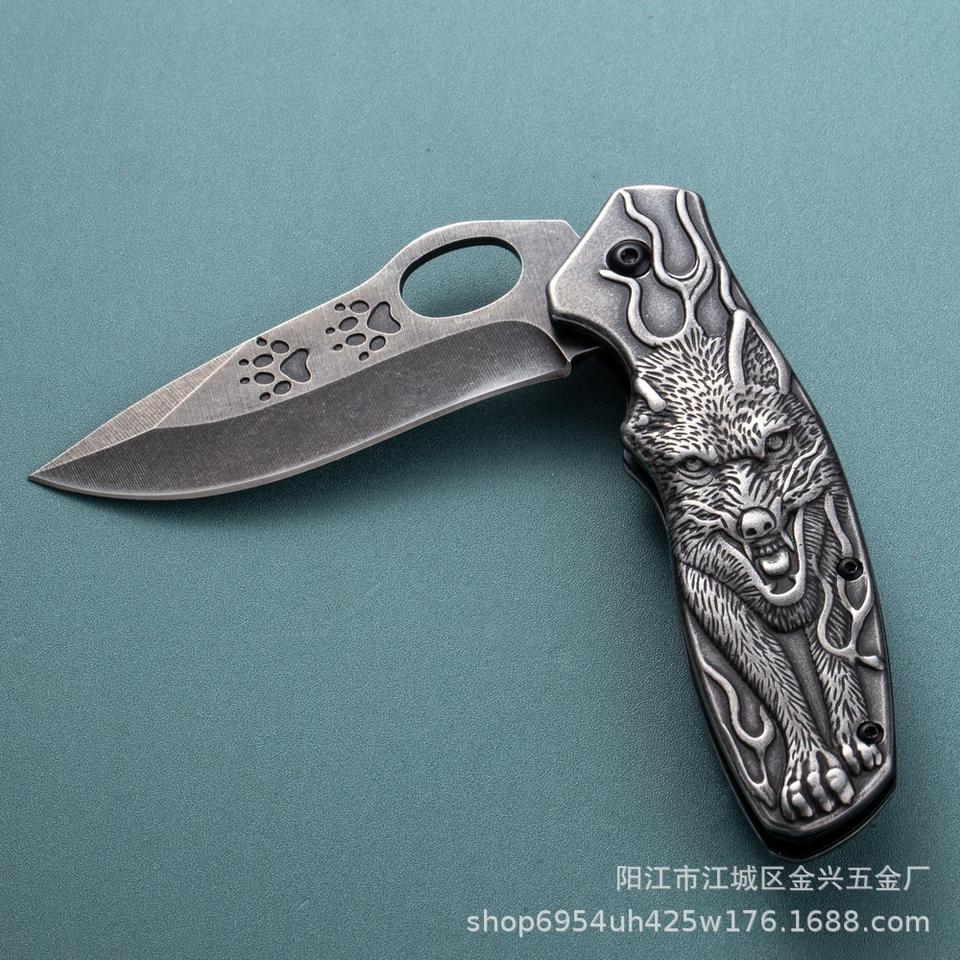 Dropshipping Shopify Wolf Head Stainless Steel Folding Knife Camping Tactical Survival EDC Multi Tool Pocket Knife For Outdoor