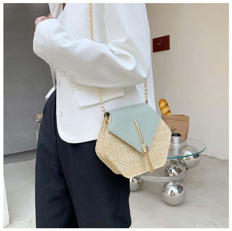 Dropshipping Shopify Women's Straw Woven Shoulder and Crossbody Beach Bag for Summer Vacation in Boho Style with Tassel Details