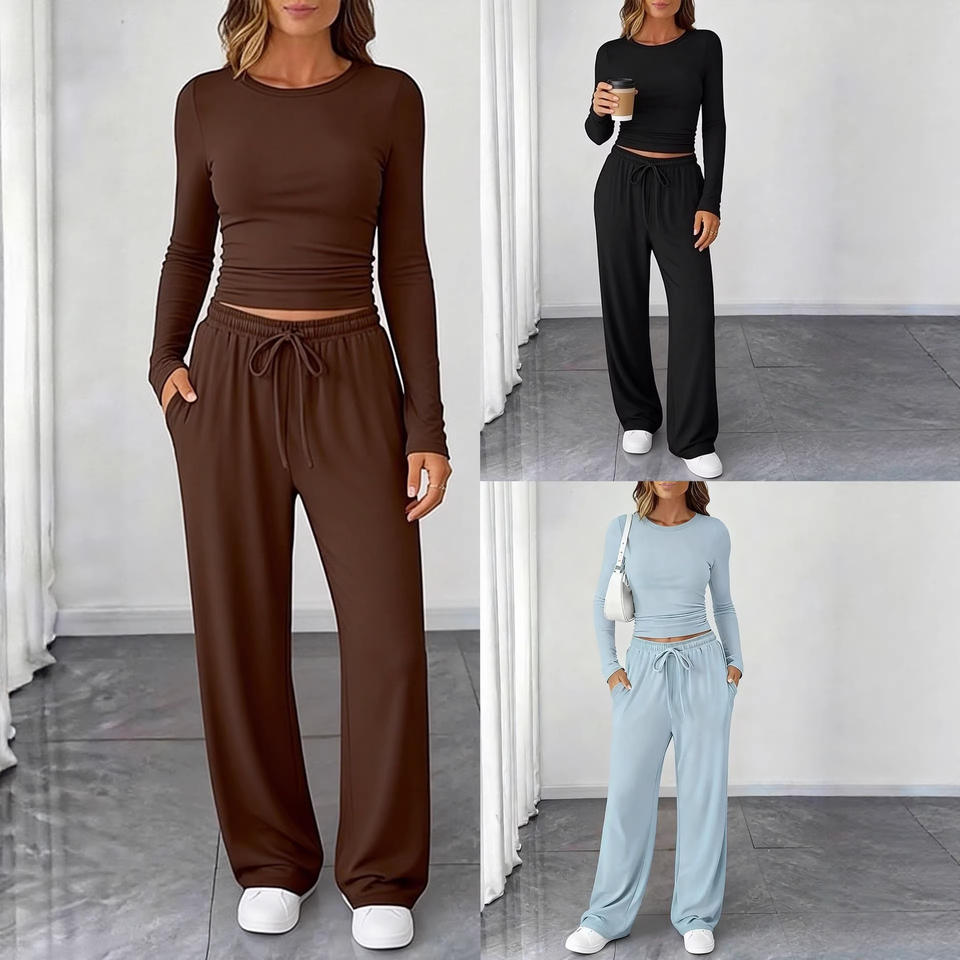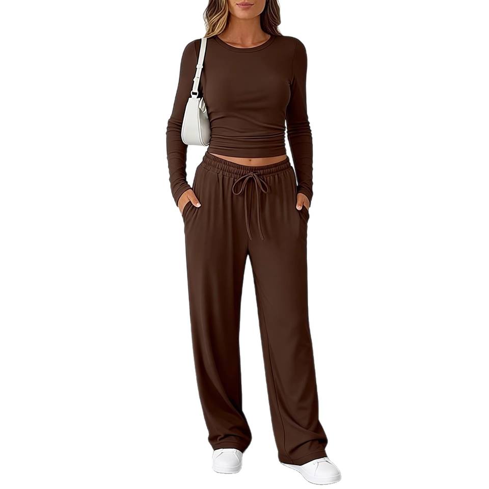 Dropshipping Shopify Womens Slim Fit Casual Set Round Neck Long Sleeve Tracksuit For Sports Yoga Spring Summer Streetwear