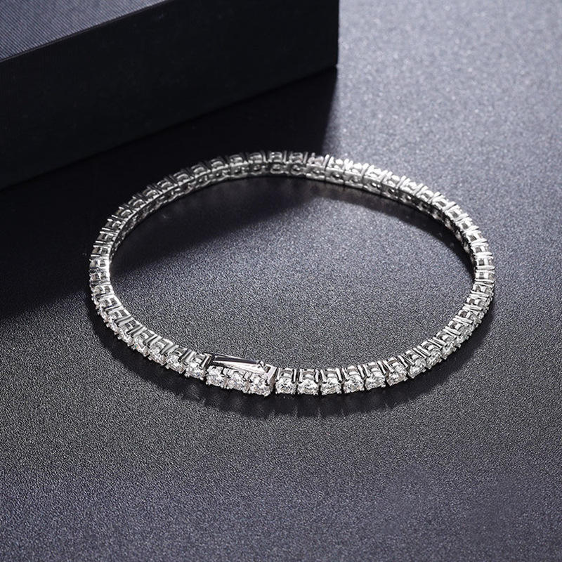 Dropshipping Silver Plated Sterling Silver Hip Hop Jewelry Cuban Link Bangle Iced Princess Cut 3mm 0.3-0.6ct Real Moissanite