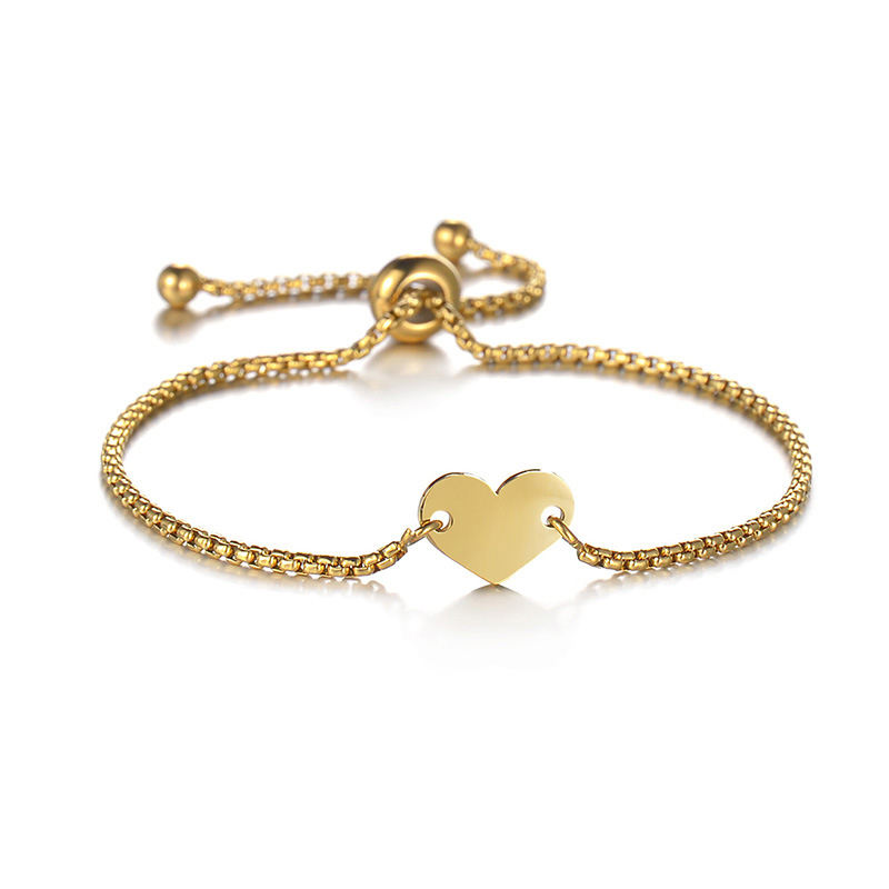 Dropshipping Stainless Steel Trendy Engraved Heart Charm DIY Love Gift 4Colors Jewelry Making Adjustable Box Chain Bracelet