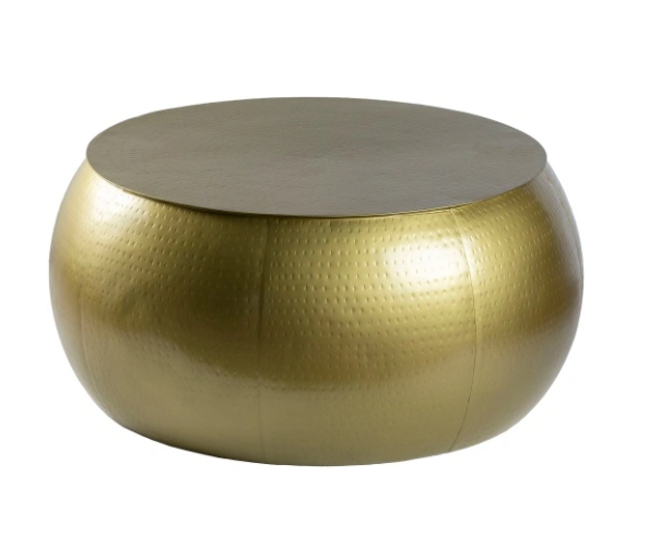 Drum Shape Coffee Table Hammered Metal Table Hammered Elegant Metal Side Table Perfect for Living Rooms, Bedrooms, or Patios