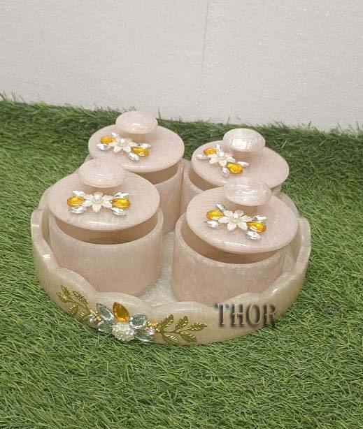Dry Fruit Jar Tray Set With 3d Work Set of 4 Bowl Table Decor Snack Bowl Serving Bowl Dry Fruit Jar Wedding Gift