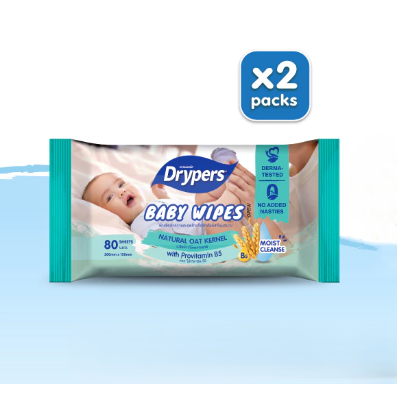 Drypers Baby Wet Wipes 2x80s Natural Plant-Based Oat Kernel Extract with Provitamin B5 Cotton Cleaning Wipes for Newborns above