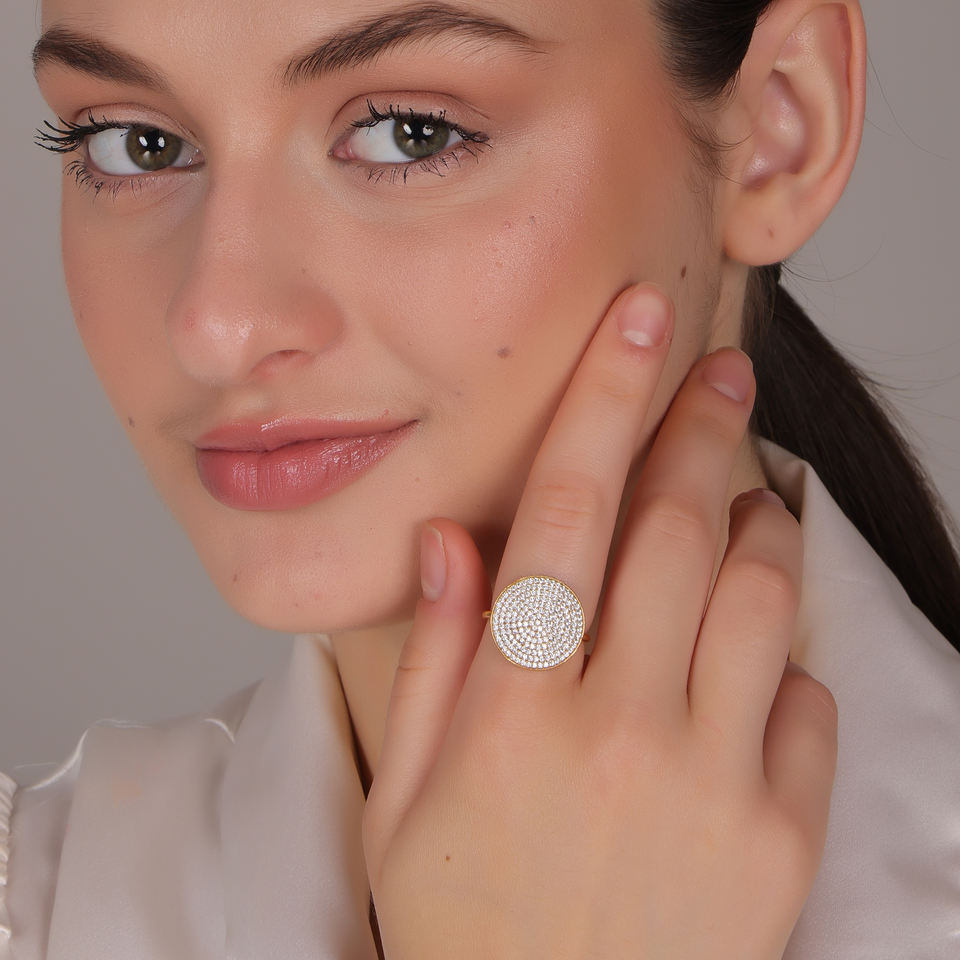 Dua CZ Round Adjustable Ring Sparkling Cubic Zirconia Gold-Plated Engagement Jewelry