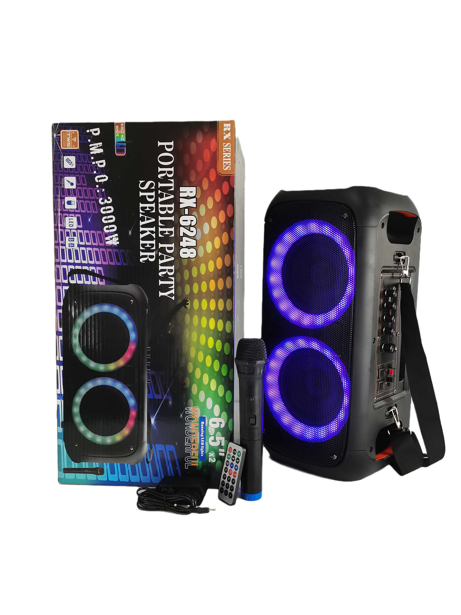 Dual 6.5 Inch Small Speaker with LED Light Ring Karaoke Player Rechargeable Speaker Box for Sale Stock and Ready Goods