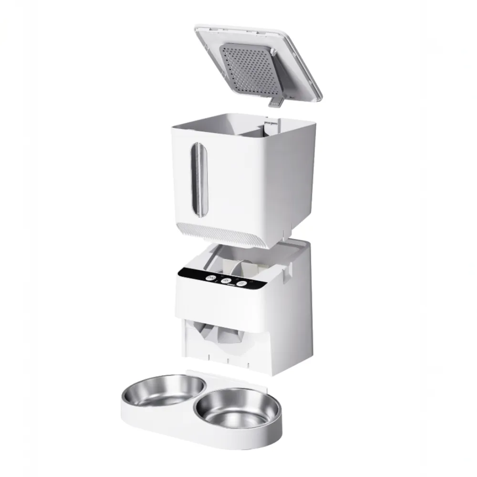 Smart Dual Bowl Auto Pet Feeder Automatic Slow Dog Feeder with Charging Power Source Plastic Material
