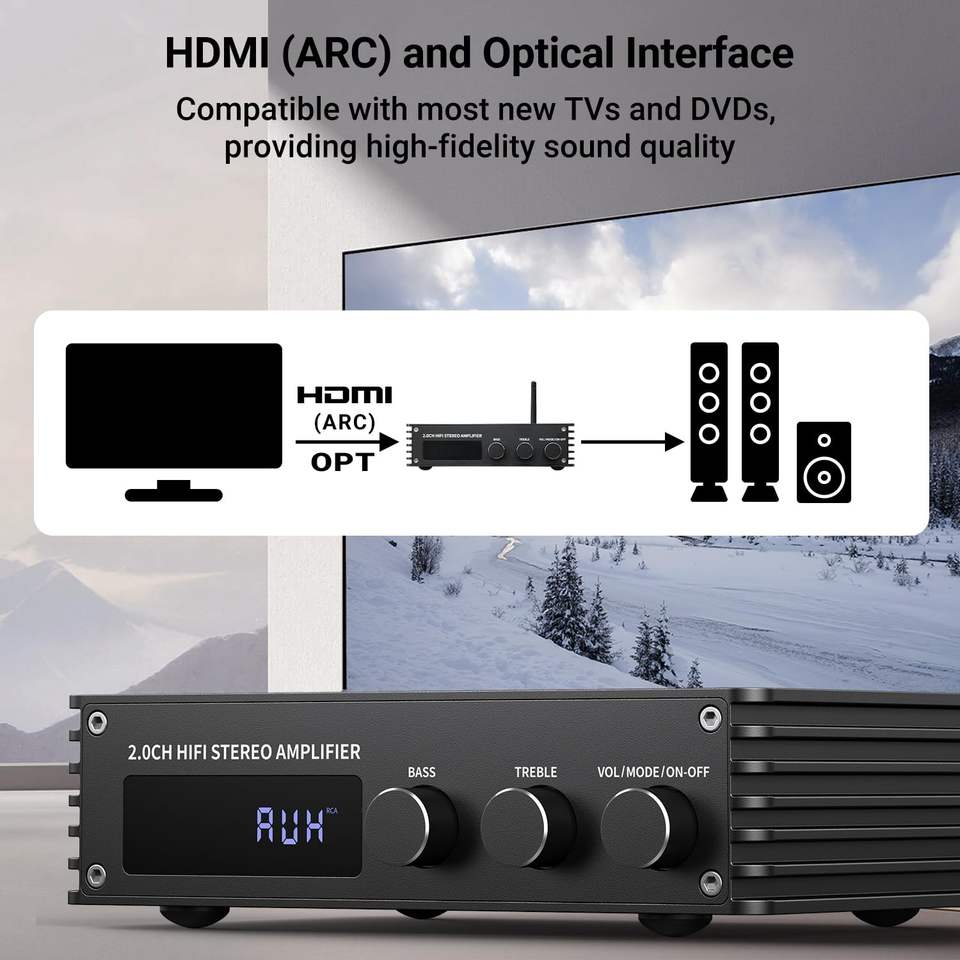 Dual-Channel 200 W High-Stereo for Blue tooth Audio Stereo Amplifier 2.0-Channel Receiver for Premium Audio Experience