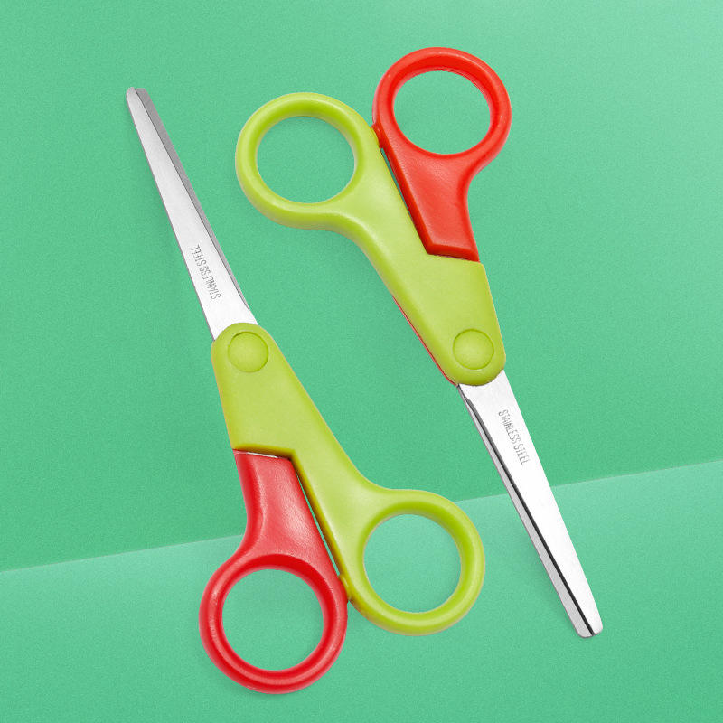Dual Color Handle Household Scissors Green And Red Straight Head Stainless Steel For Paper Cutting Craft Student Office Use