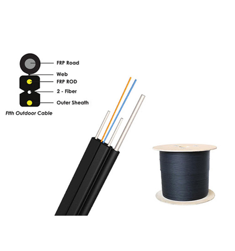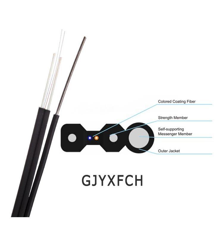Dual Core SM G657A2 Fiber Optic Drop Cable 6/24 2km Multimode Outdoor FTTH Drop Cable 100m Coaxial Steel Wire Strength Member