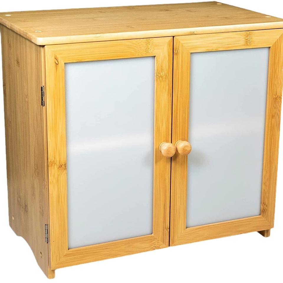 Dual-Door Bamboo Bread Box Frosted Multi-Layer Storage 4L Capacity Steel Kitchen Organizer Country Style Food Storage Container