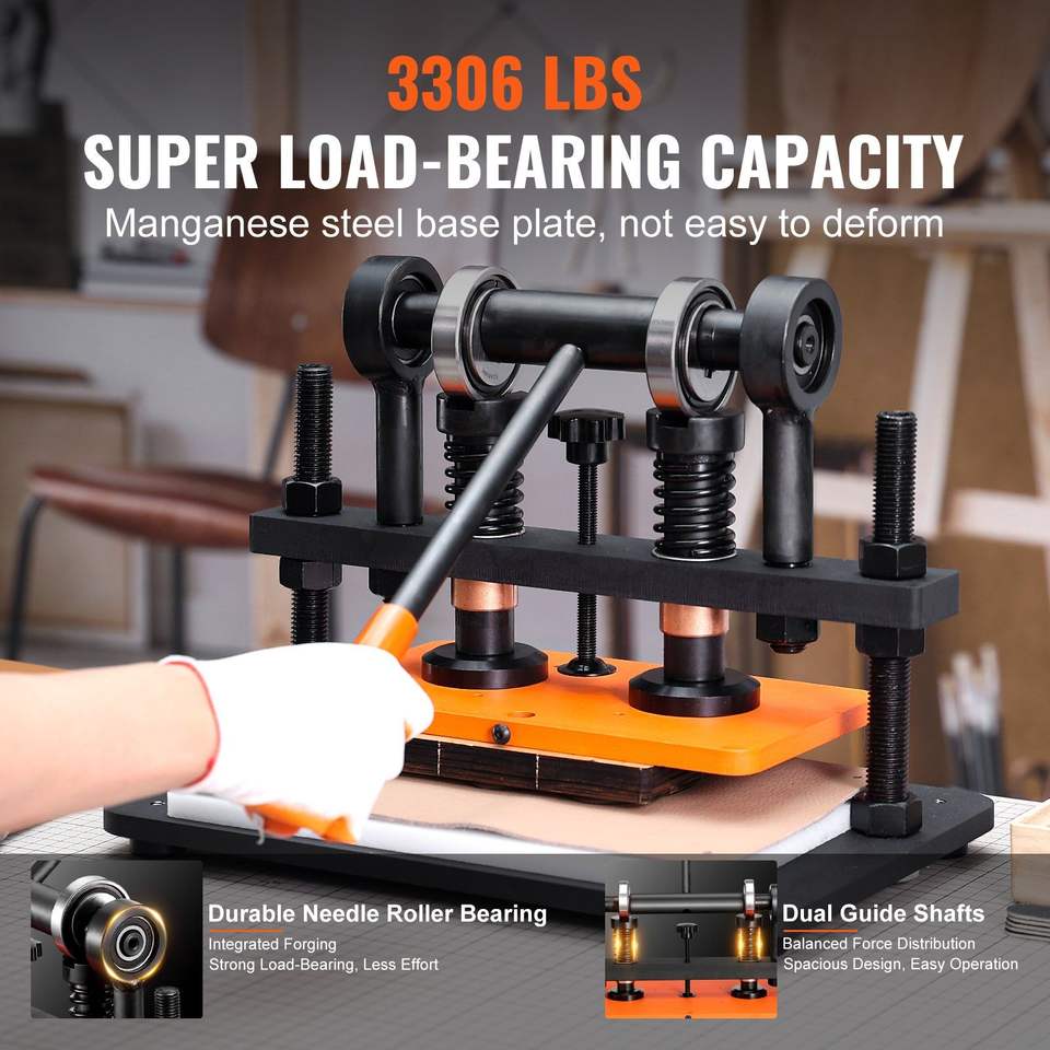 Dual Guide Shafts Die Cut Machine 0.47 Pressure Stroke Manual Leather Embossing Machine 10.2 X 5.9 Embossing Plate for Crafts