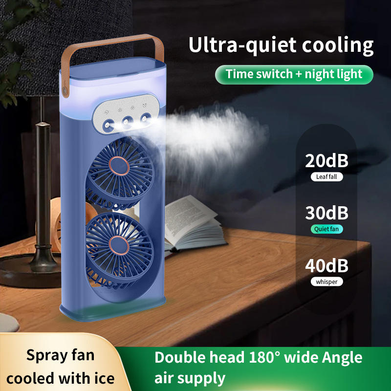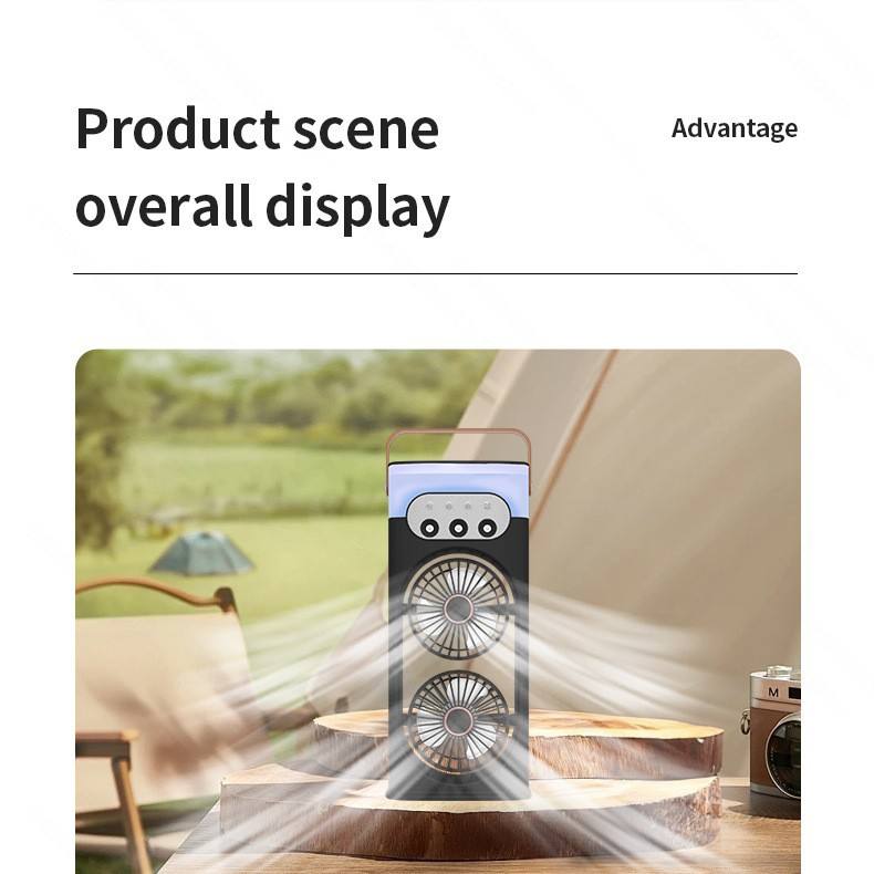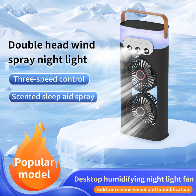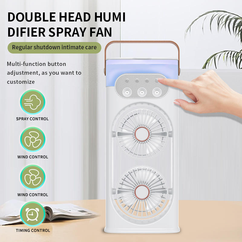 Dual-Head Spray Fan With Humidifier And Night Light Portable USB Powered Office Desktop Air Circulator White