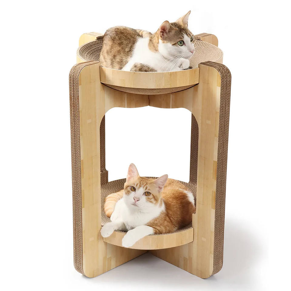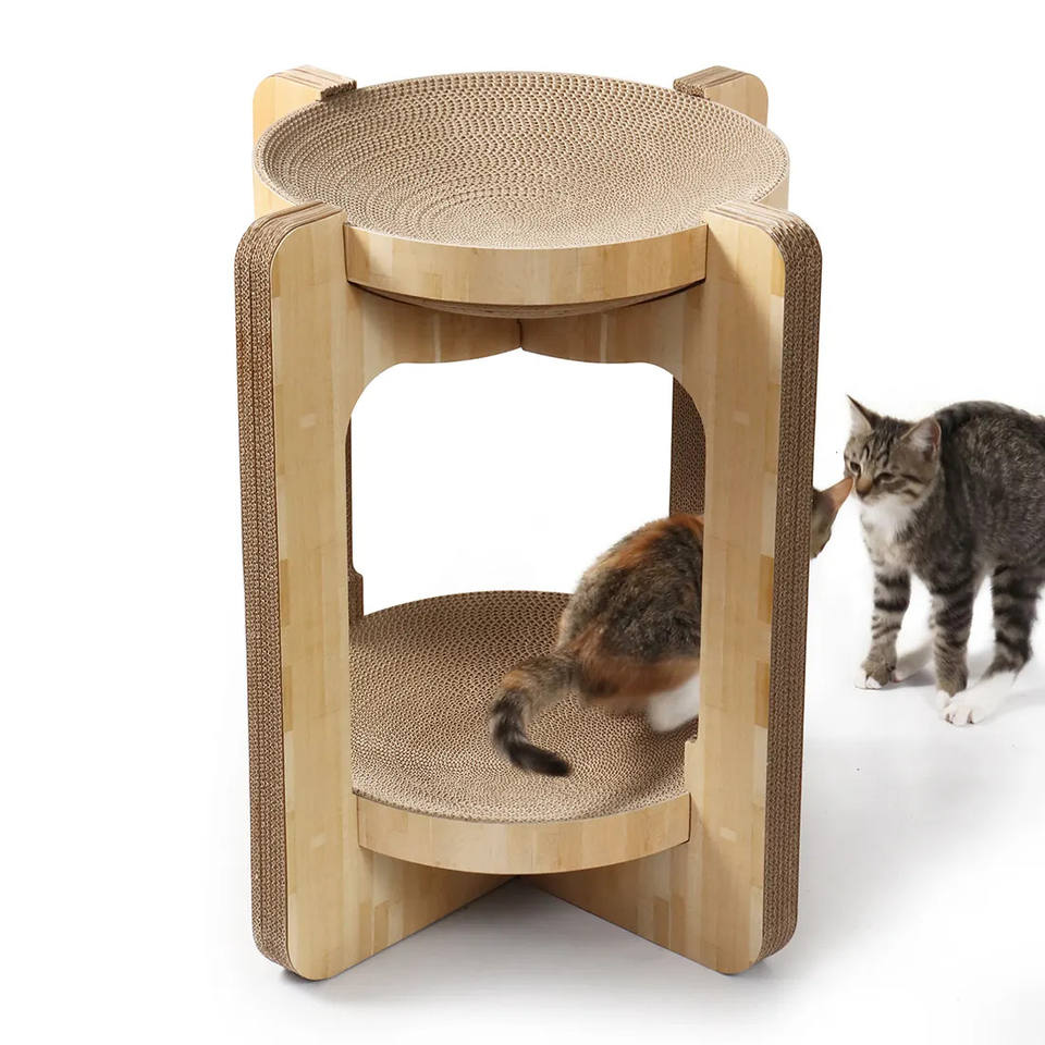 Dual Layer Cat Scratch Post Squeak Toy for Pet Cats Durable Double-Thickness CardboardScratcher