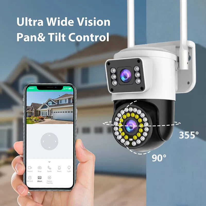 Dual-Lens 3K 6MP HD Outdoor Wireless Network Security Camera 5G 2.4G Dual-Band WIFI PTZ Surveillance with Dual-Screen Monitor