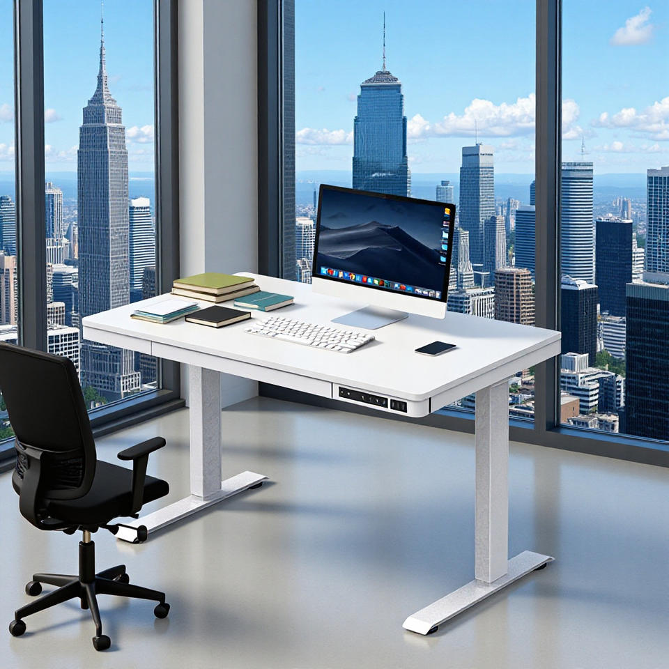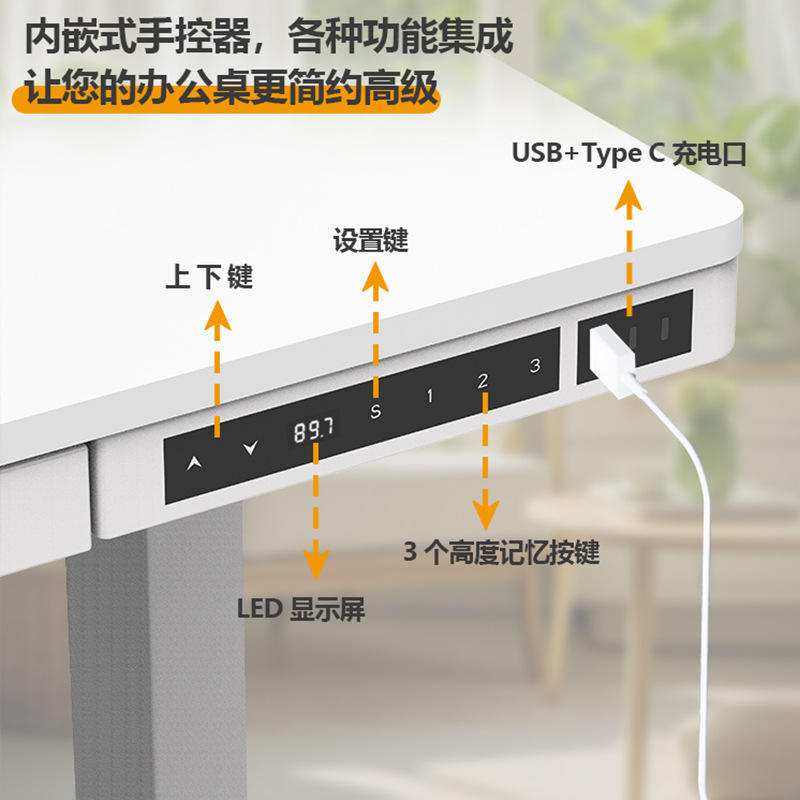 Dual Motor Electric Height Adjustable Computer Desk Wooden Home Office Study Gaming Desk With Powder Coating Metal Frame