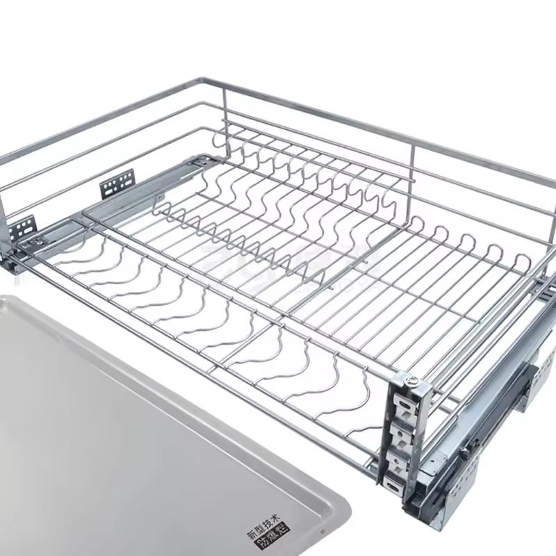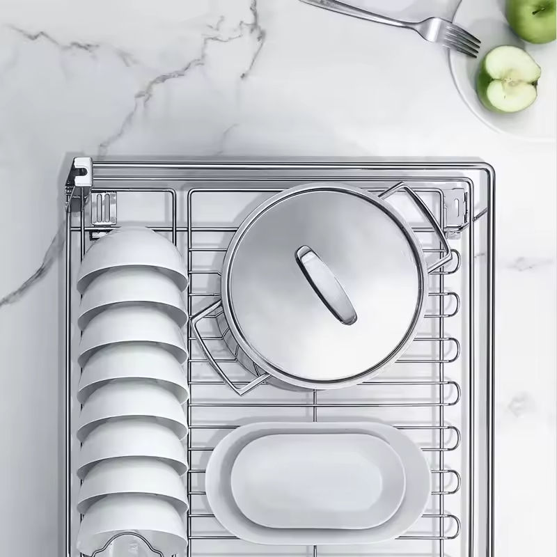 Dual Purpose 304 Stainless Steel Built-In Dish Rack Kitchen Cabinet Drawer Double Spice Basket for Dining Bedroom Office Storage