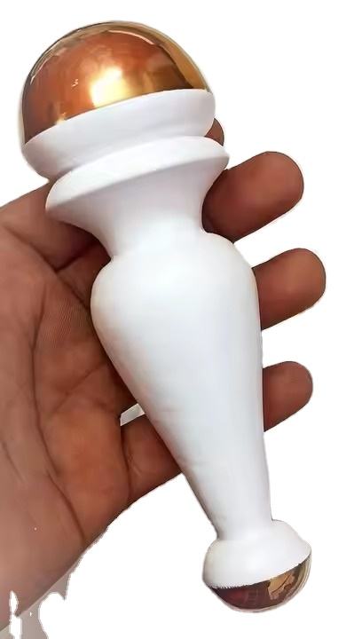 Dual Purpose Eco-Friendly Handmade Kansa Wand Massager Wooden Handle Face Back Solid Ball Stress Relief Wholesale India Wood