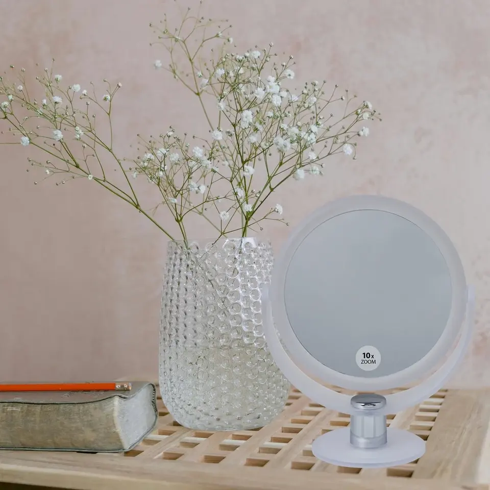Dual Sided 10X Magnifying Freestanding Vanity Mirror Rubberized Desktop Makeup Mirror Dressing Table and Office Desk