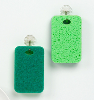 Dual Sided Wood Pulp Cotton Cellulose Sponge with Hook Holder Soft Durable Absorbent Eco-Friendly Household Cleaning Tool