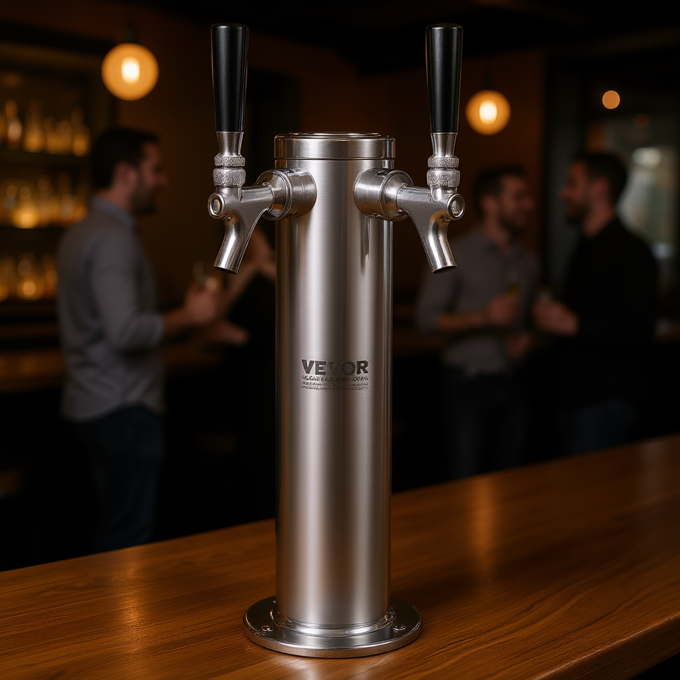 Vevor Dual Tap Stainless Steel Beer Tower 2 Taps Self Closing Faucet Commercial Grade Countertop Dispenser For Bars Restaurants