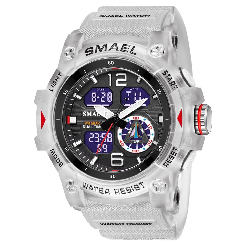 Dual Time Sport Watch Smael 8007 Digital Diver Watch with Double Display Alarm & Stop Watch 50 Bar Water Resistance