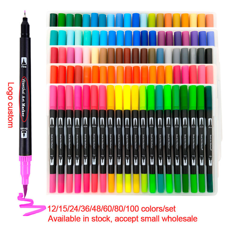Dual Tip Calligraphy & Watercolour Art Markers Pen Set 60/80/100 Colors for Adult Colouring Books