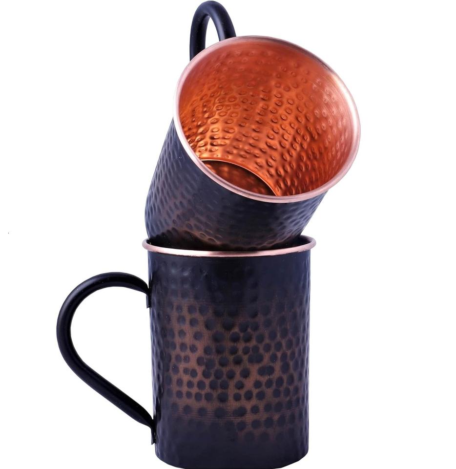 Dual Tone Hammered Copper Mug Set Classic Black and Copper Finish for Stylish Modern Drinkware