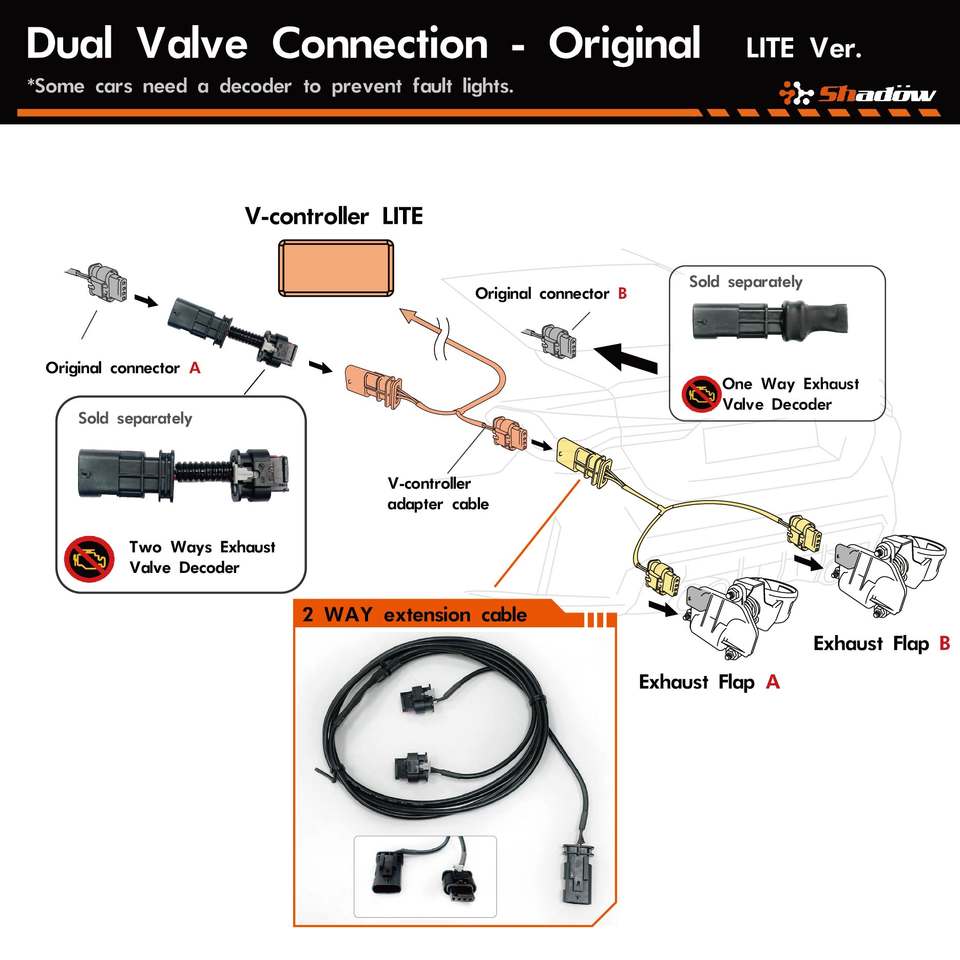 Dual Valve Controller Harness 1 to 2 Connector for Exhaust System Modification for 4pin Flaps
