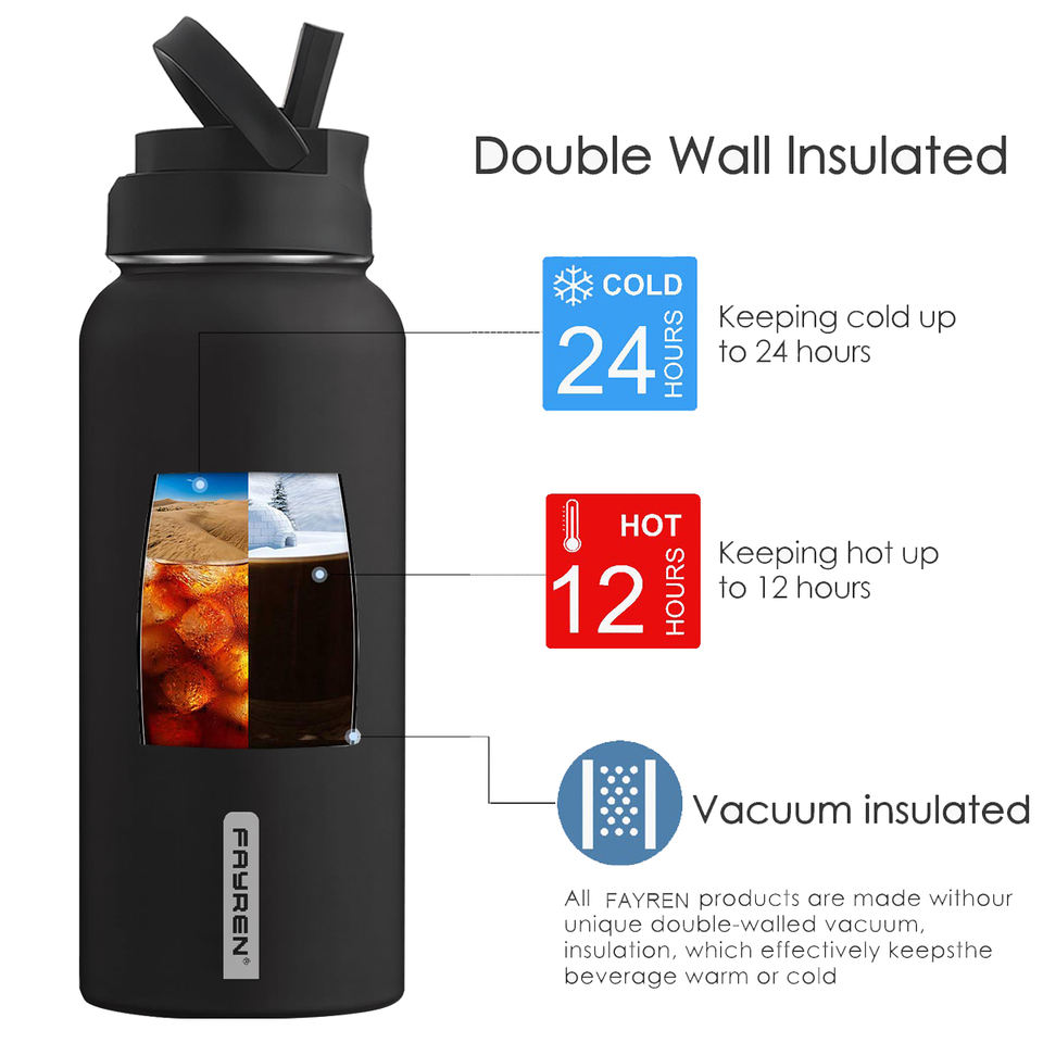 Dual-Wall Stainless Steel Travel Sports Bottle with Leak-Proof for Straw Lid Wide Mouth Double-Walled Vacuum Metal Water Tumbler