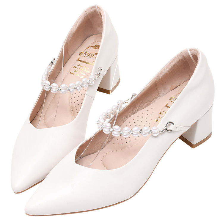 Dual-Wear Pearl Chain Block Heel Wedding Shoes 5cm