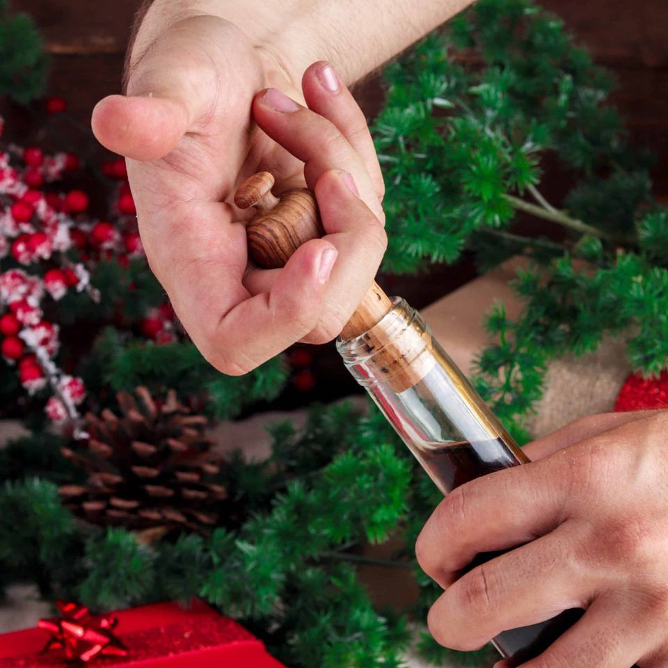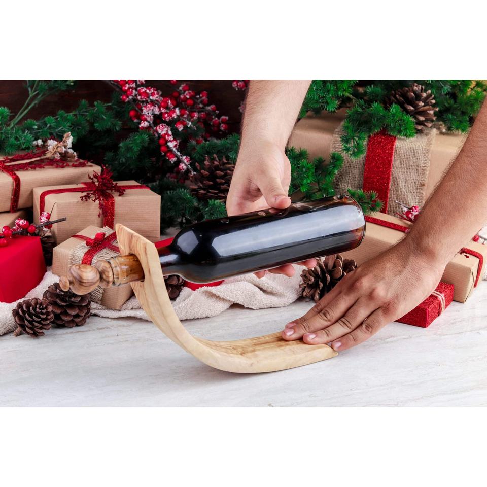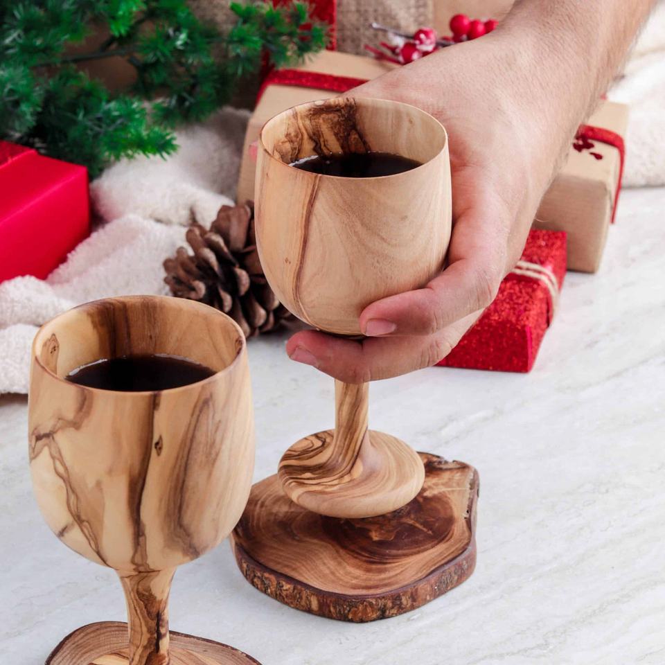 Dual Wooden Goblet Dinnerware Set with Bottle Holder & Stopper for Elegant Gifts