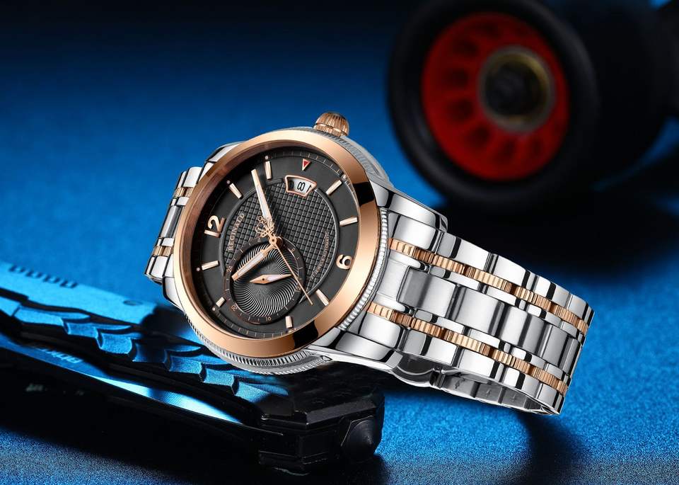 Dual calendar automatic mechanical watch waterproof stainless steel wristwatch business watch men's sports watch