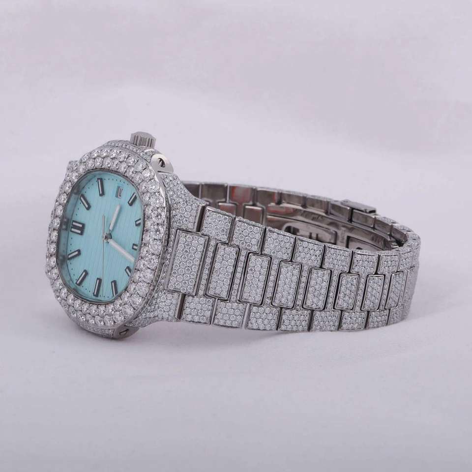 DualTone Hip Hop Style Iced Out Stainless Steel Date Function Chronograph Moissanite Diamond Setting Watch for Men and Women.