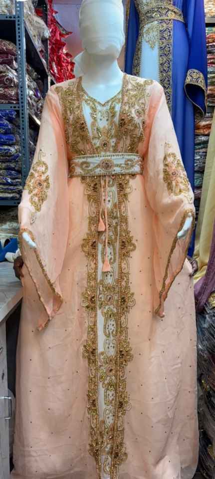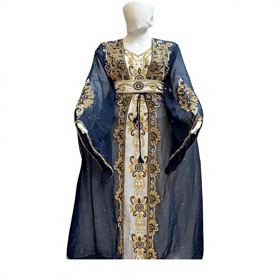 Dubai Farasha Elegant Grey Pink Blue Muslim Traditional Kaftan Stone Beads Hand Work Moroccan Design Plus Size Ankle Length