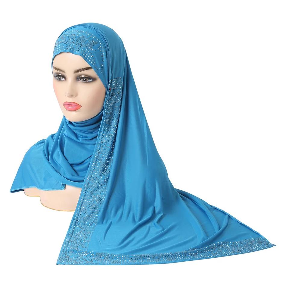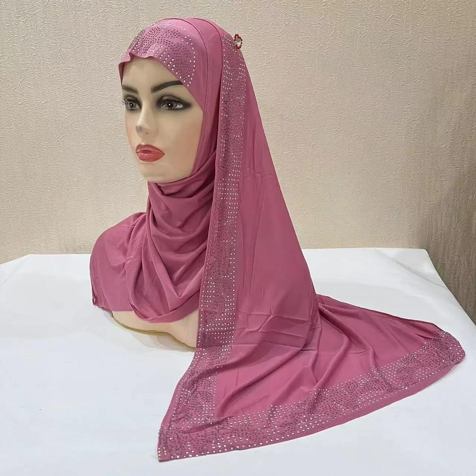 Dubai Style Long Instant Hijab Abayas with Lace Breathable Islamic Headscarf for Festivals and Praying 1pc Medium Length