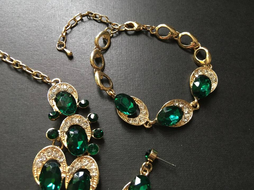 Dubai Wholesale 14k Gold Plated S925 Jewelry Set with Lab Grown Emerald Heavy Emerald Jewelry Set