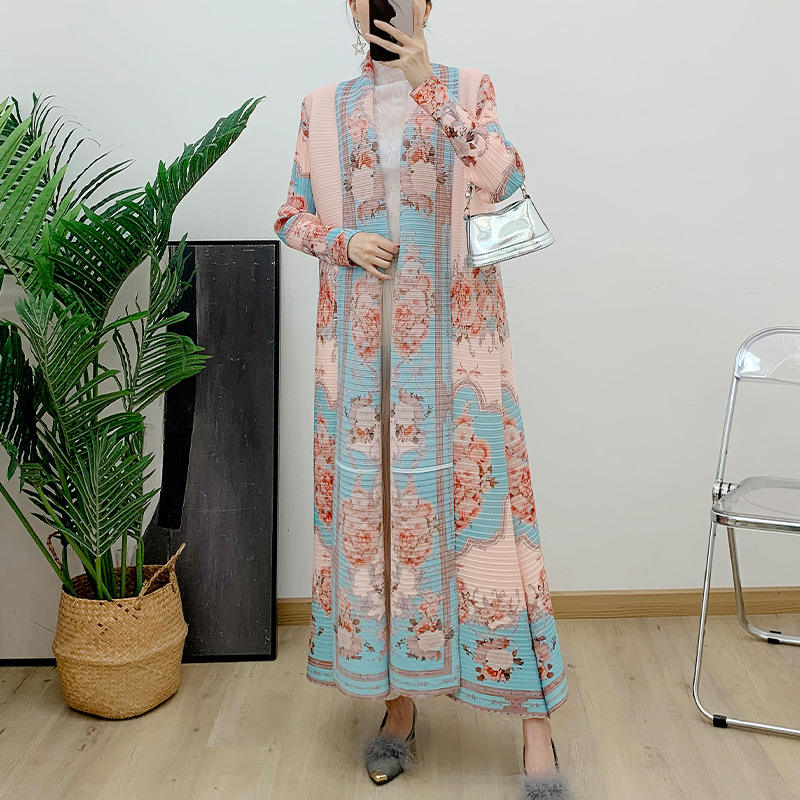 Dubai Popular Women's Elegant Bat Sleeve Long Abaya Spring Anti-Wrinkle Breathable Ankle Length Cardigan Pink Printed Dress