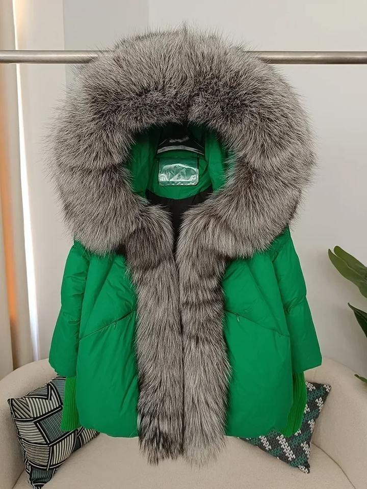 Duck Down Coat Winter 2024 Loose Oversize Puffer Jacket Women Real Fox Fur Collar Hooded Natural Thick Warm Streetwear Outerwear