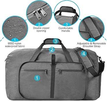 Duffle Bag with Shoes Compartment and Adjustable Strap,Foldable Travel Duffel Bags for Men Women,Waterproof Duffel Bags