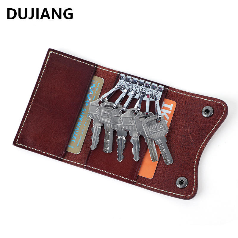 Dujiang Key Pouch 7 Inch Genuine Leather Key Holder With Card Slots For Home Storage