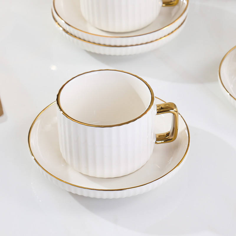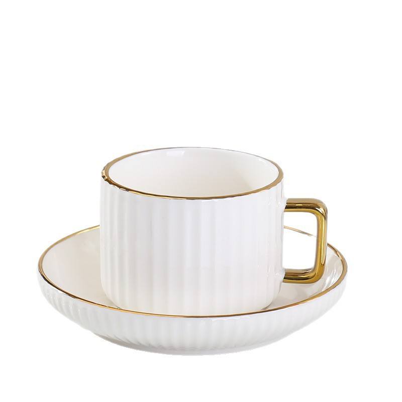 Dujin Ceramic Coffee Mug With Saucer Gold Plated Standard Capacity Solid Color Set For Afternoon Tea Presents