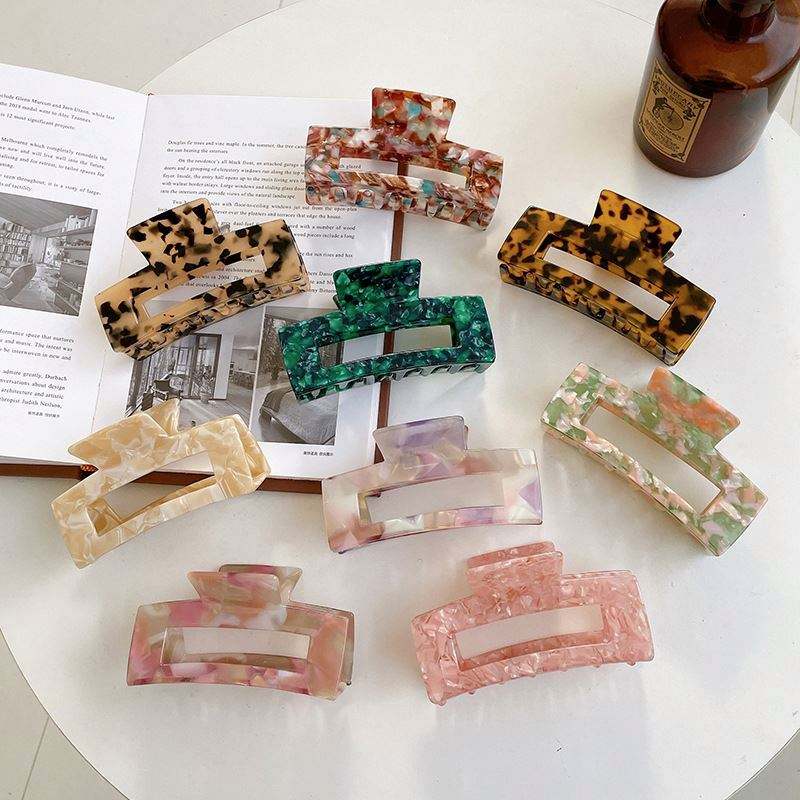 Duowei Custom Logo Color Square Hot Selling 10.5cm Large Acetate Hair Clip Claws Big HairGrip for Women