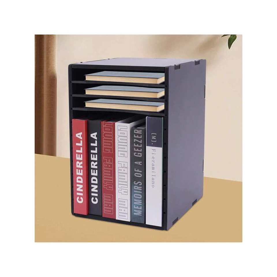 Durable 11-Slot Desktop Storage Vertical File Holder 11 Compartment Black Letter-Size Shelves Finished Durable Laminate Sorter