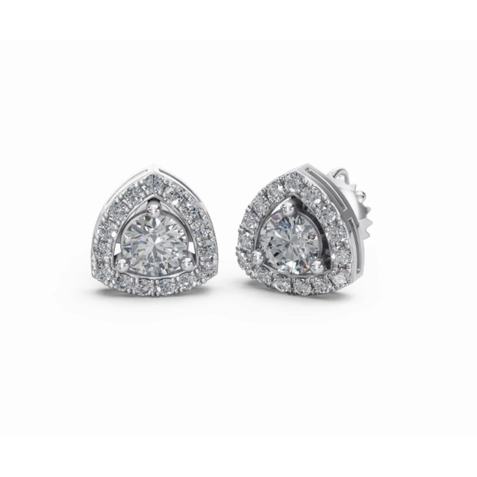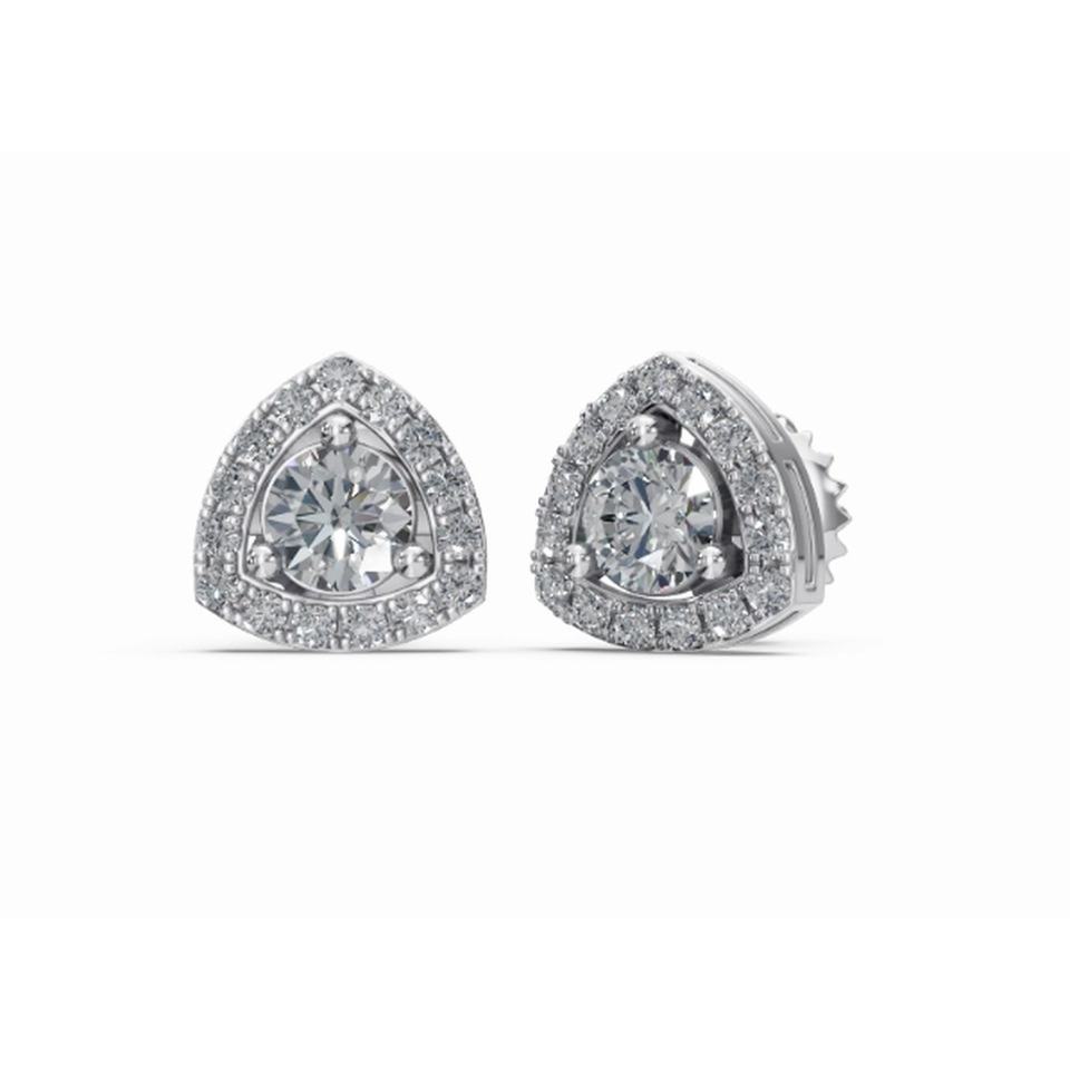 Durable 14 Kt Gold Triad Of Radiance Halo Diamond Studs Earrings Round Cut Lab Grown Jewelry Bulk Wholesale Oem Vendor