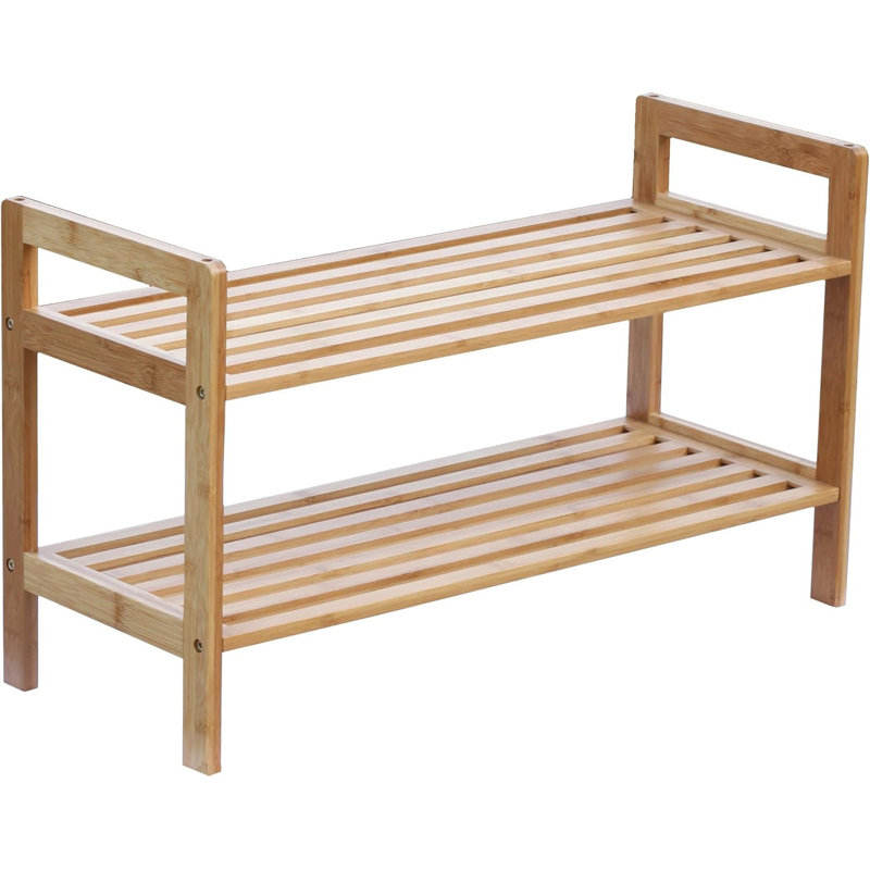 Durable 2-Tier Brown Bamboo Shoe Rack Modern & Minimalist Design for Home Furniture for Living Room or Bedroom