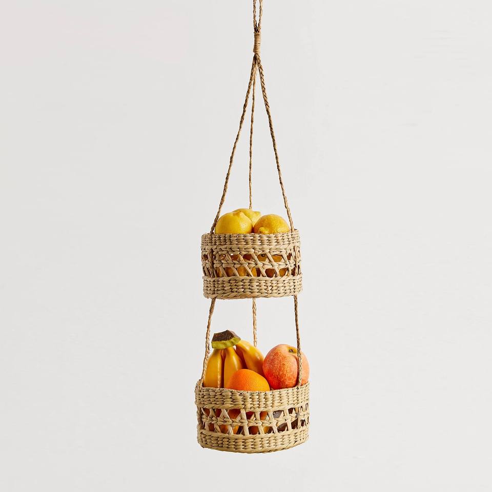 Durable 2 Tier Kitchen Storage Baskets Water Hyacinth Fruit Hanging Basket Made in Vietnam