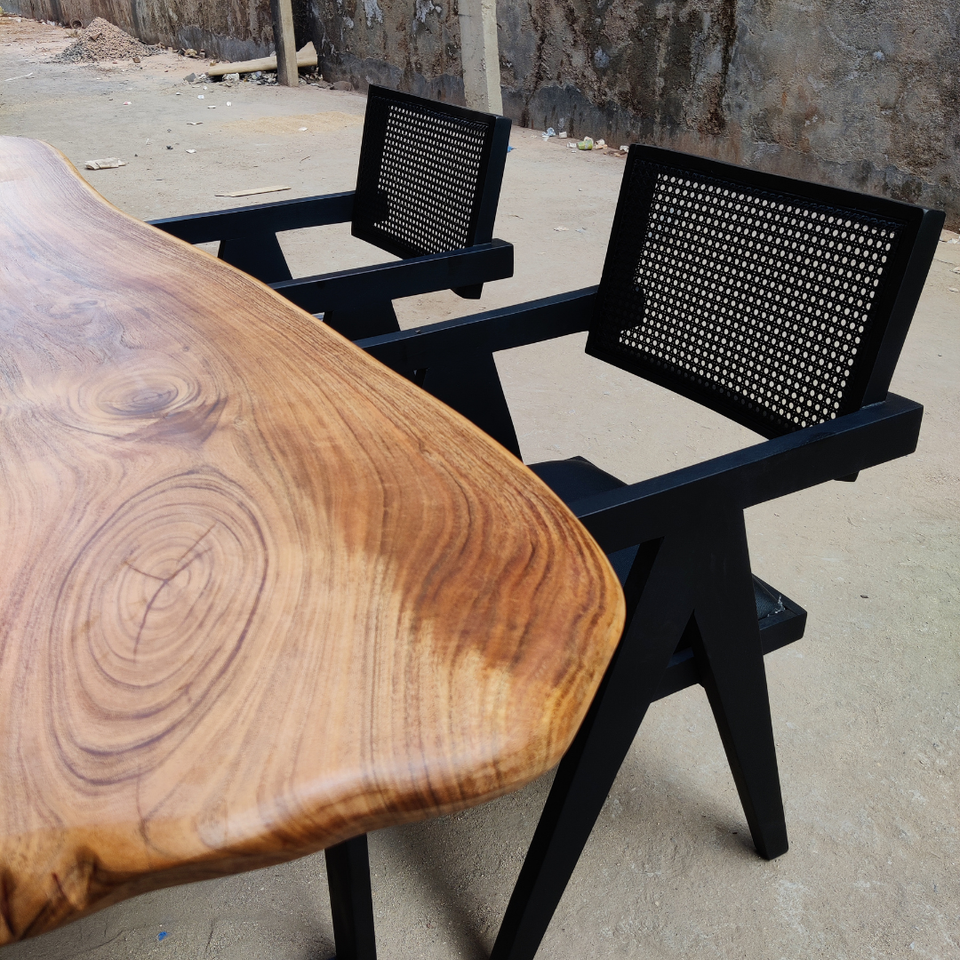 Durable Eco-Friendly Acacia Solid Wood Dining Table with Metal Legs Live Edge Handmade Minimalist Design 6-Seater Home Furniture