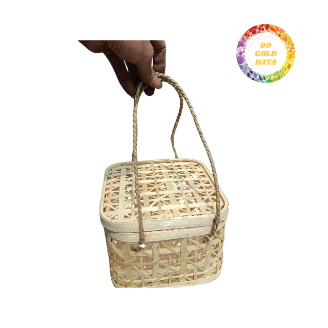 Durable Bamboo Basket Handwoven for Packaging and Serving Purposes, Featuring Neat Finishing and Reusable Structure